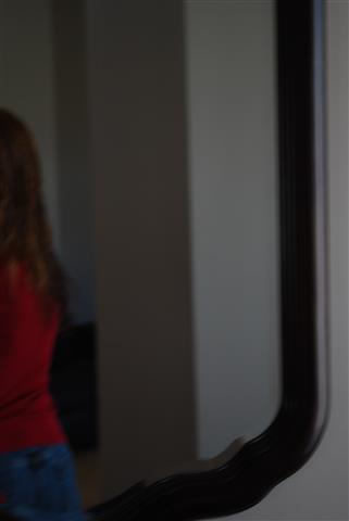 I took over 30 shots for this post, trying to get a picture of myself reflected in our front hallway mirror. Most of them look like this one: