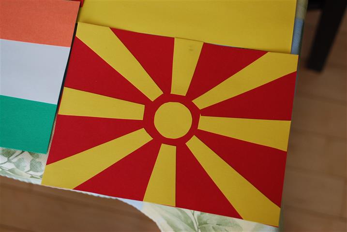 So I was encouraging the kids to pick out flags they wanted to make, pointing them at the list of Olympic winter countries (no way am I making every flag in the world…at least not this week), and while I was hoping for nice simple things like Germany and Russia and Finland, the Little Miss insists there’s only one flag, and one flag only, she wants, and that is Macedonia. So we made a flag for Macedonia, and I’m rather proud of myself: