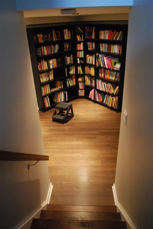 So here’s a couple of shots of the bookshelves that you see when you first walk down the stairs.