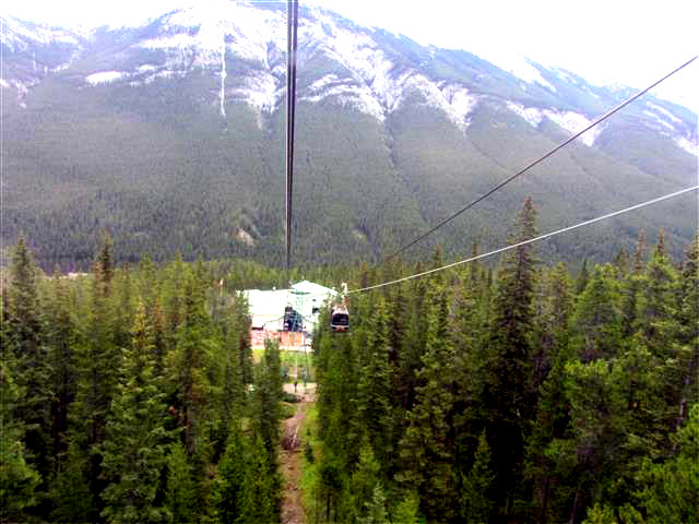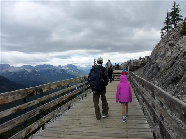 Later that afternoon we took the gondola up Sulphur Mountain which a) gives you a great view of the town, b) has an interesting old weather-prediction station at the top (which is a bit of a hike up), and c) is the secret source of the science that powers the hot springs. Definitely worth seeing, despite the expense. It was a cool and cloudy day down below, and at the top it was pretty darn chilly – we were happy we had brought jackets and gloves.