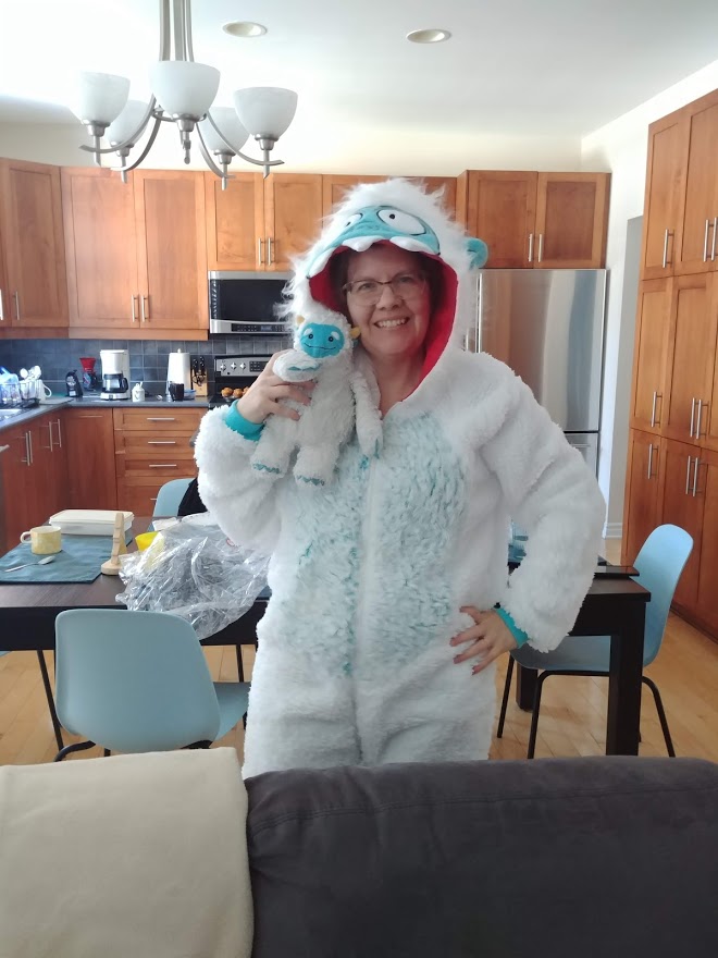I dressed up as a yeti, which if you know me is funny, because I have a stuffed yeti and he is like my fourth child. I am seriously weird about the yeti. But is he is my boo.
